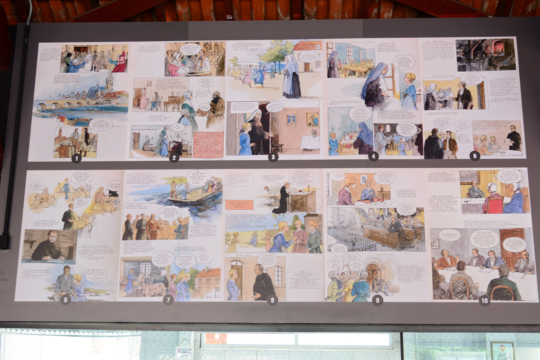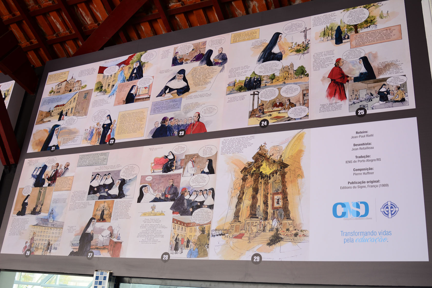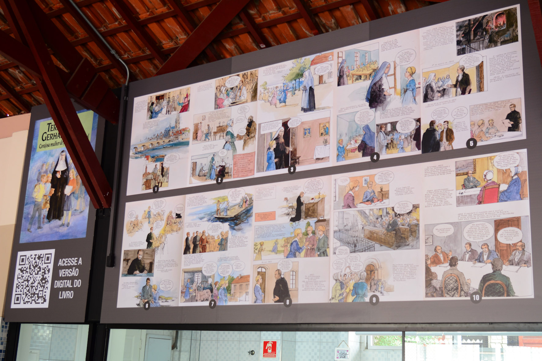 Painel de nossa Cantina, o qual traz a história de Madre Teresa em quadrinhos: