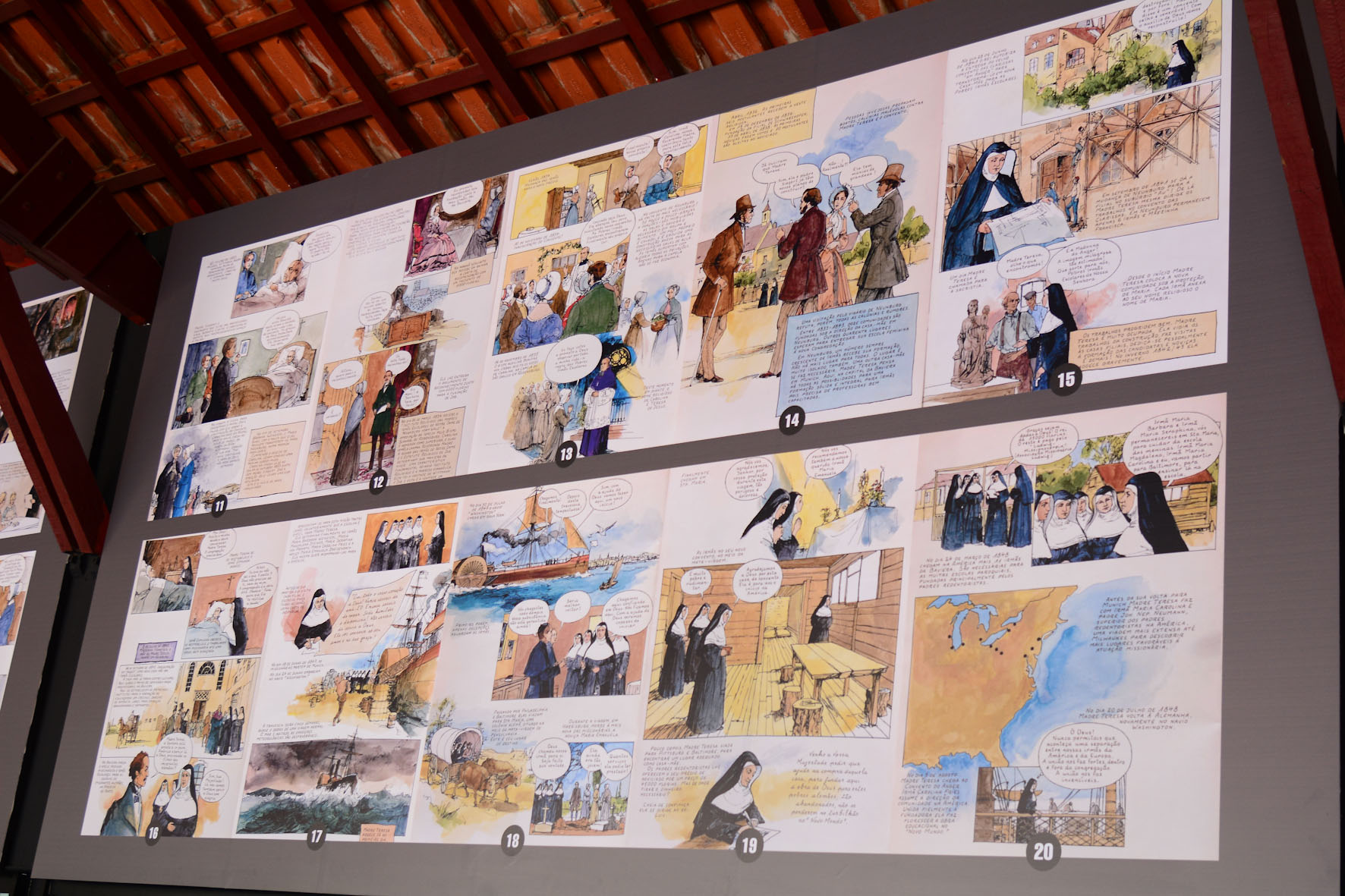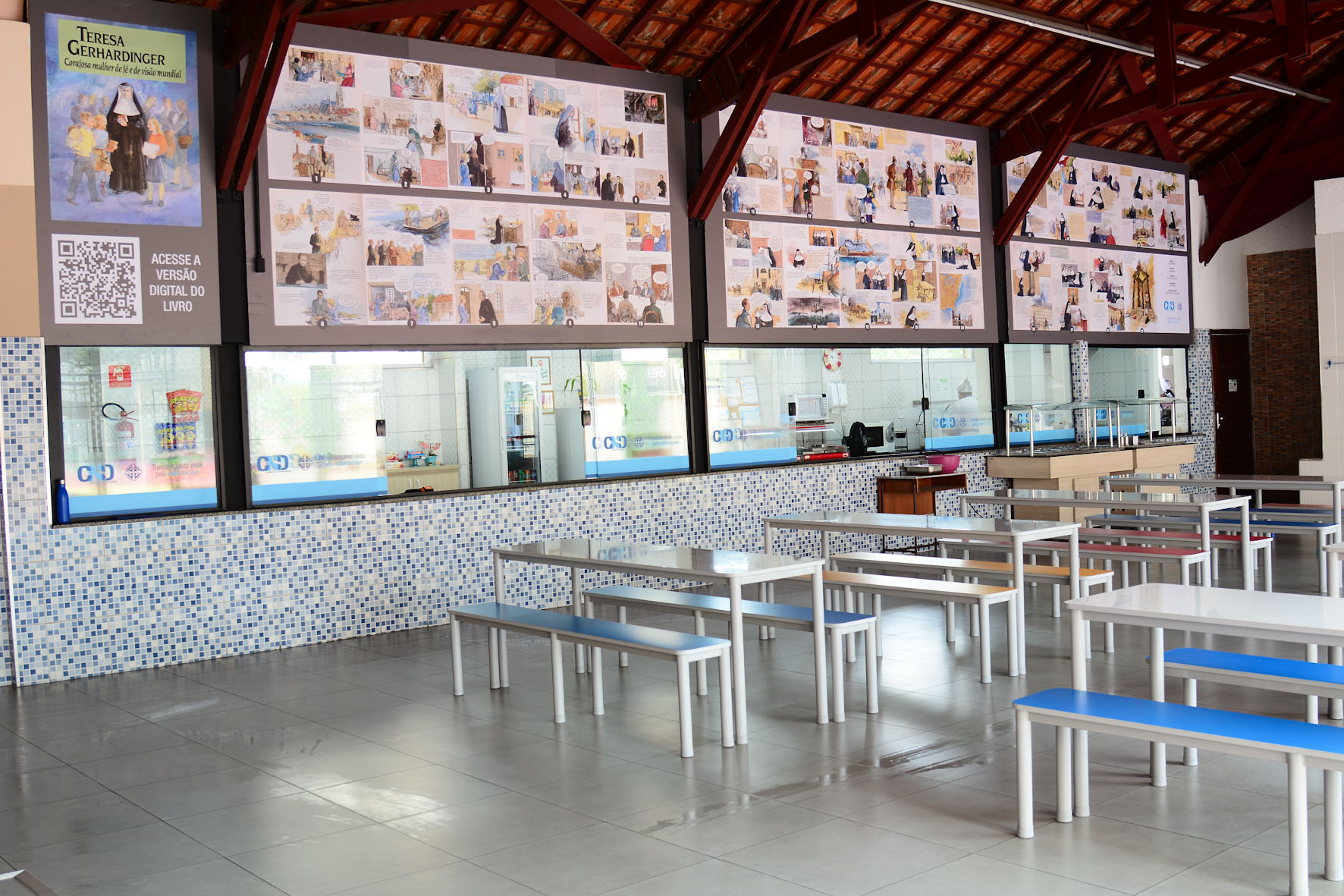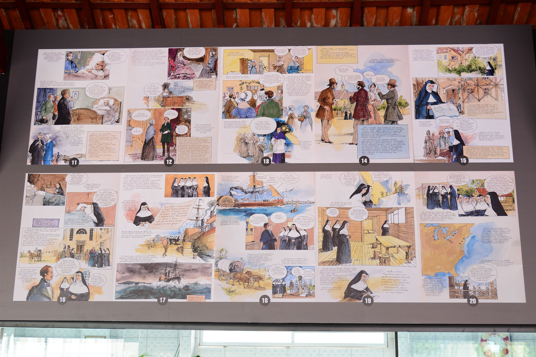 Painel de nossa Cantina, o qual traz a história de Madre Teresa em quadrinhos: